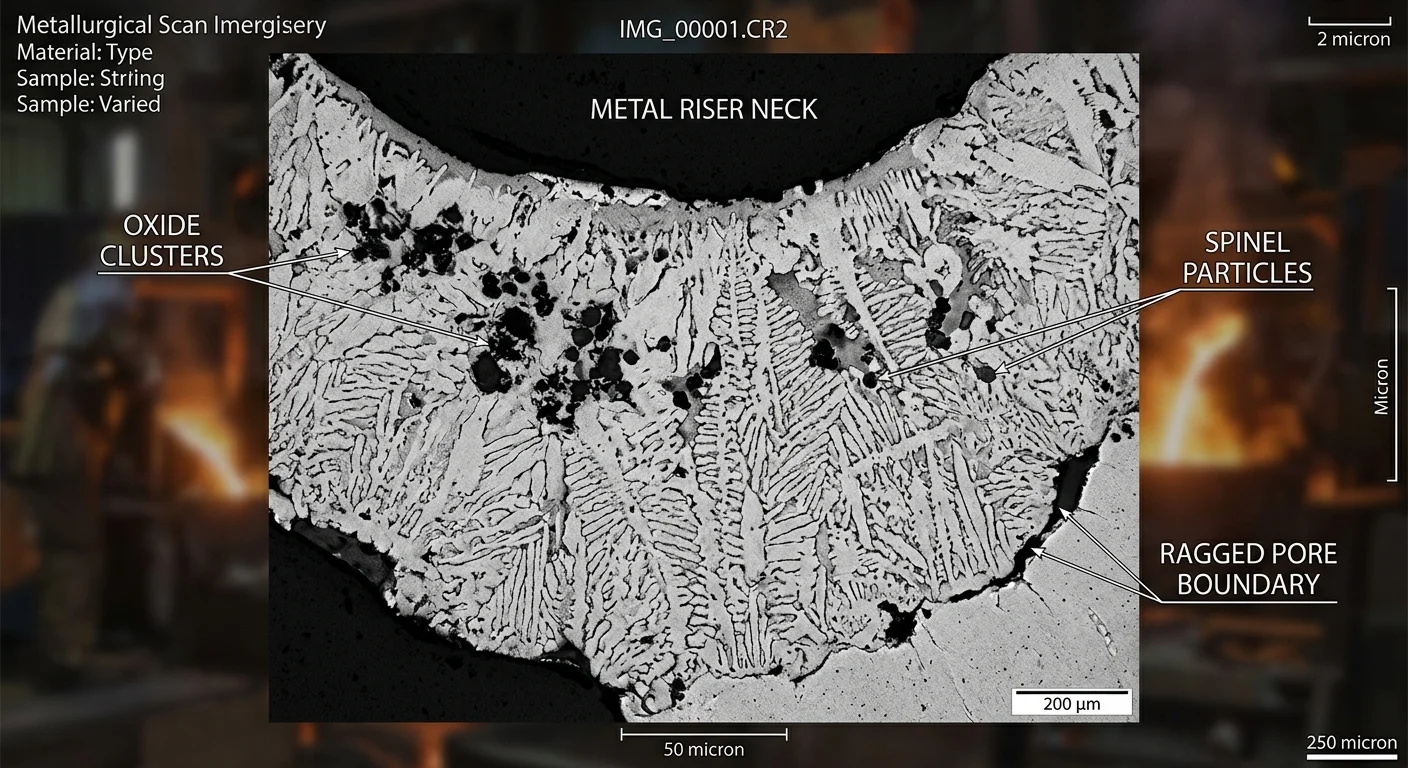 The scrap report never tells you the real story. It shows porosity. What it misses: polygonal MgO·Al₂O₃ clusters wedged into your riser neck — the ones that killed the feeding path three hours before solidification finished.