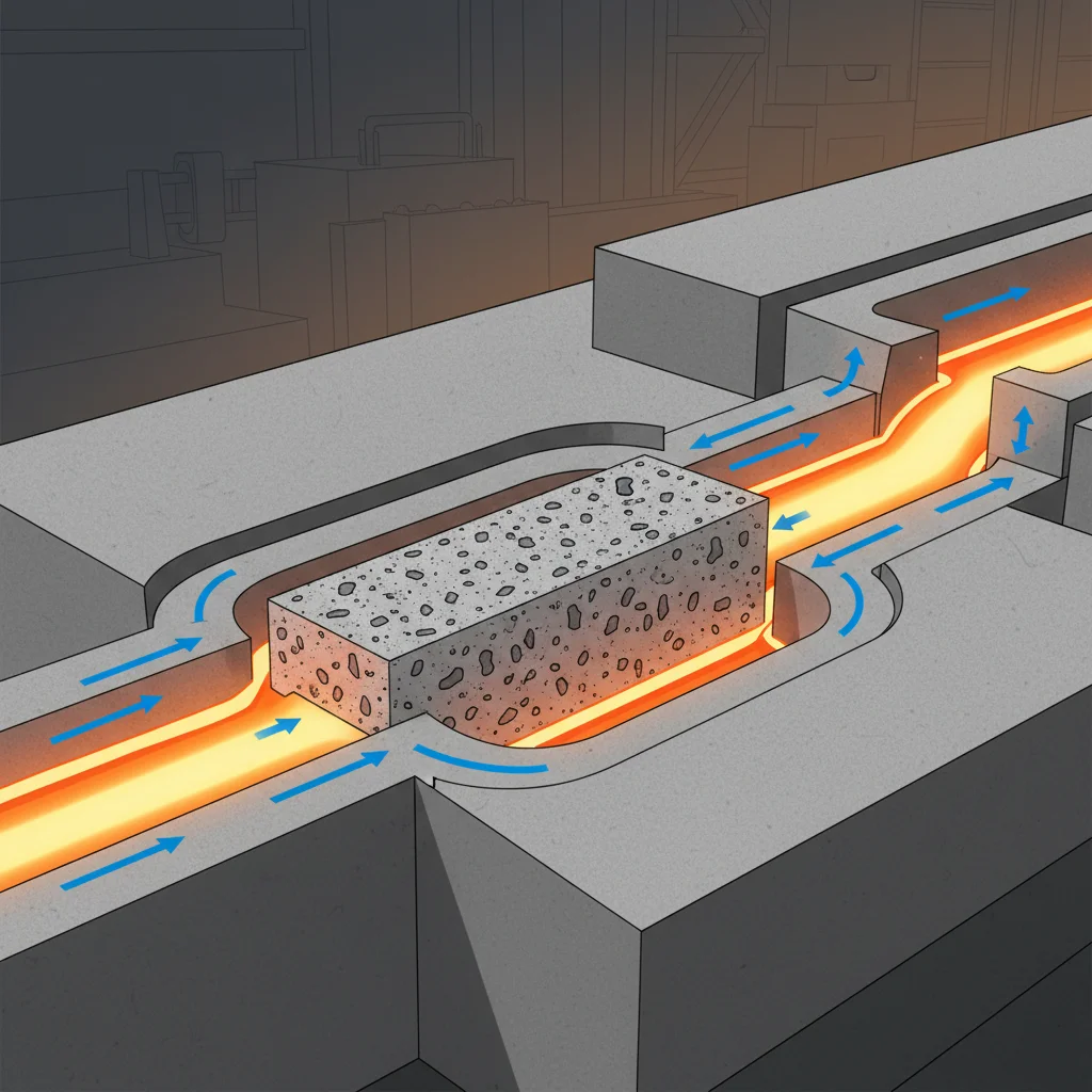 The other half is flow control. Liquid metal hits the ceramic filter, and turbulence drops fast. What enters your mold cavity becomes something much closer to laminar flow — smooth, directional, and controlled. Less turbulence means less air gets pulled in. Fewer oxide films form mid-pour. Your mold fills in a steady, uniform way instead of a chaotic one.