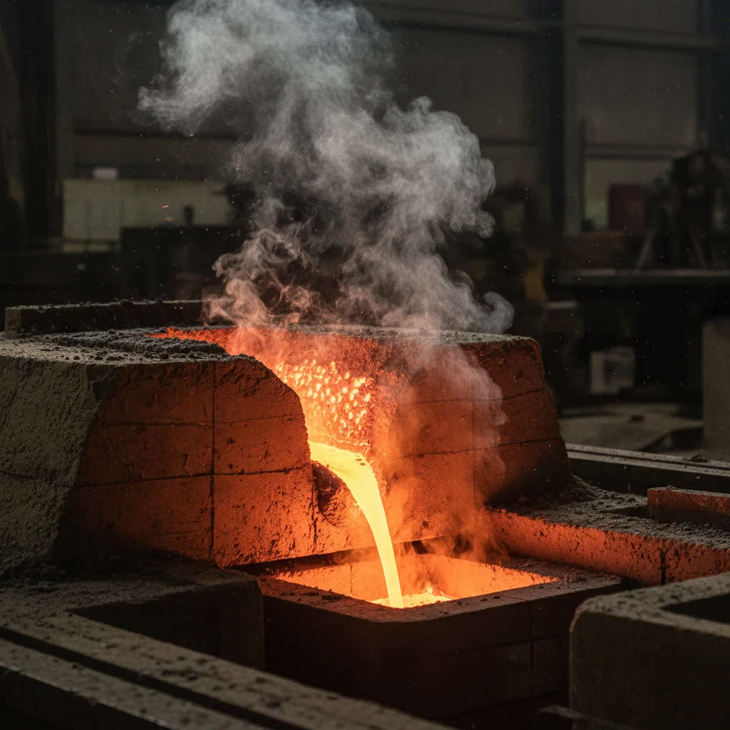 The filter is seated, the mold is closed, the priming pour is done. Now comes the pour itself — and this is where technique separates clean castings from scrap.