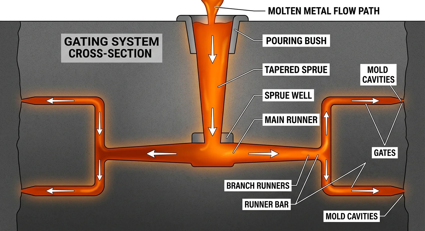 Think of it as traffic control for liquid metal. No gating system means no predictability — and no predictability means defects.