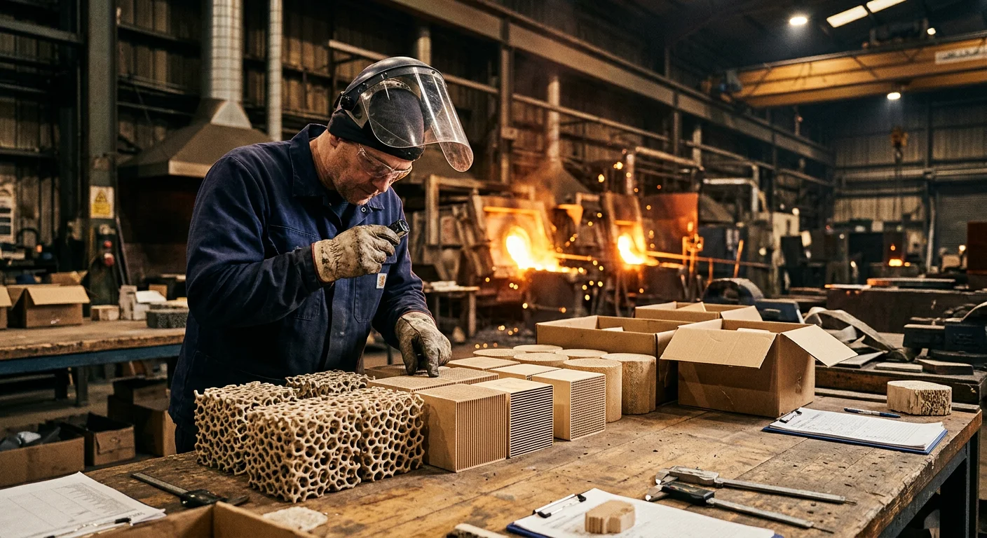 foam ceramic: Moderate filtration. Fragile under thermal shock. Flow patterns are inconsistent — that raises scrap risk in precision applications.