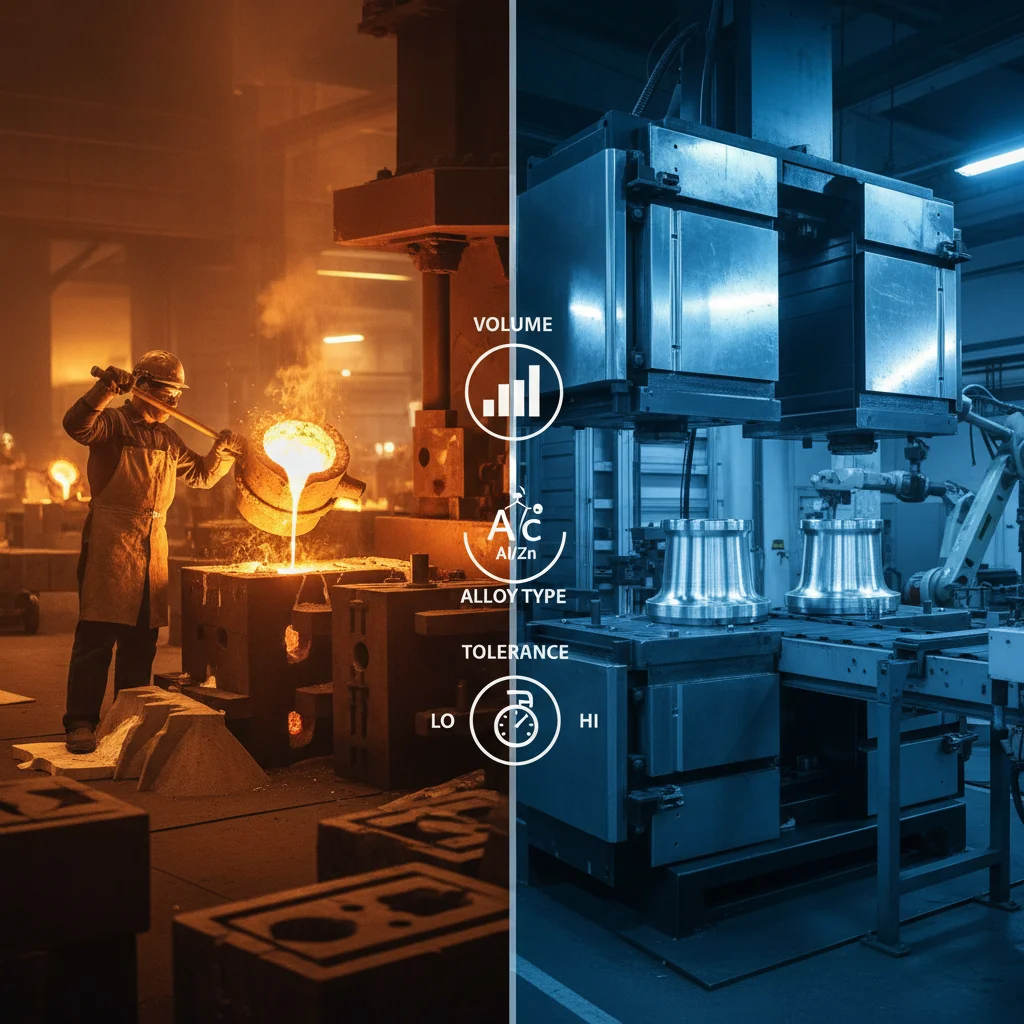 Start with volume. Sand casting makes financial sense under 300 units. Die casting becomes cost-effective at 500 units and above. The true break-even for most parts falls between 500 and 2,000 units — once you count secondary operations.